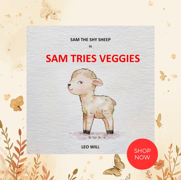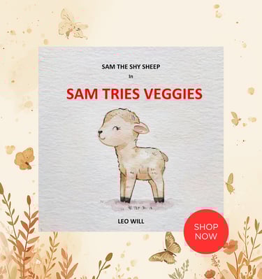 Sam the Shy Sheep is a gentle and kind soul who loves to spend time with his friends in the meadow.
